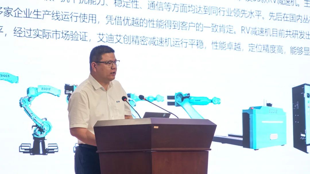 艾迪艾創總經理李軍峰從公司概況、產品介紹、應用領域、方案集成、投資收益五大模塊對艾迪艾創機器人做了詳細的介紹與講解,表示希望艾迪艾創今后能夠憑借售前一體化解決方案、售中技術指導及結構設計,以及專業快速的售后服務為各企業貢獻艾迪力量。