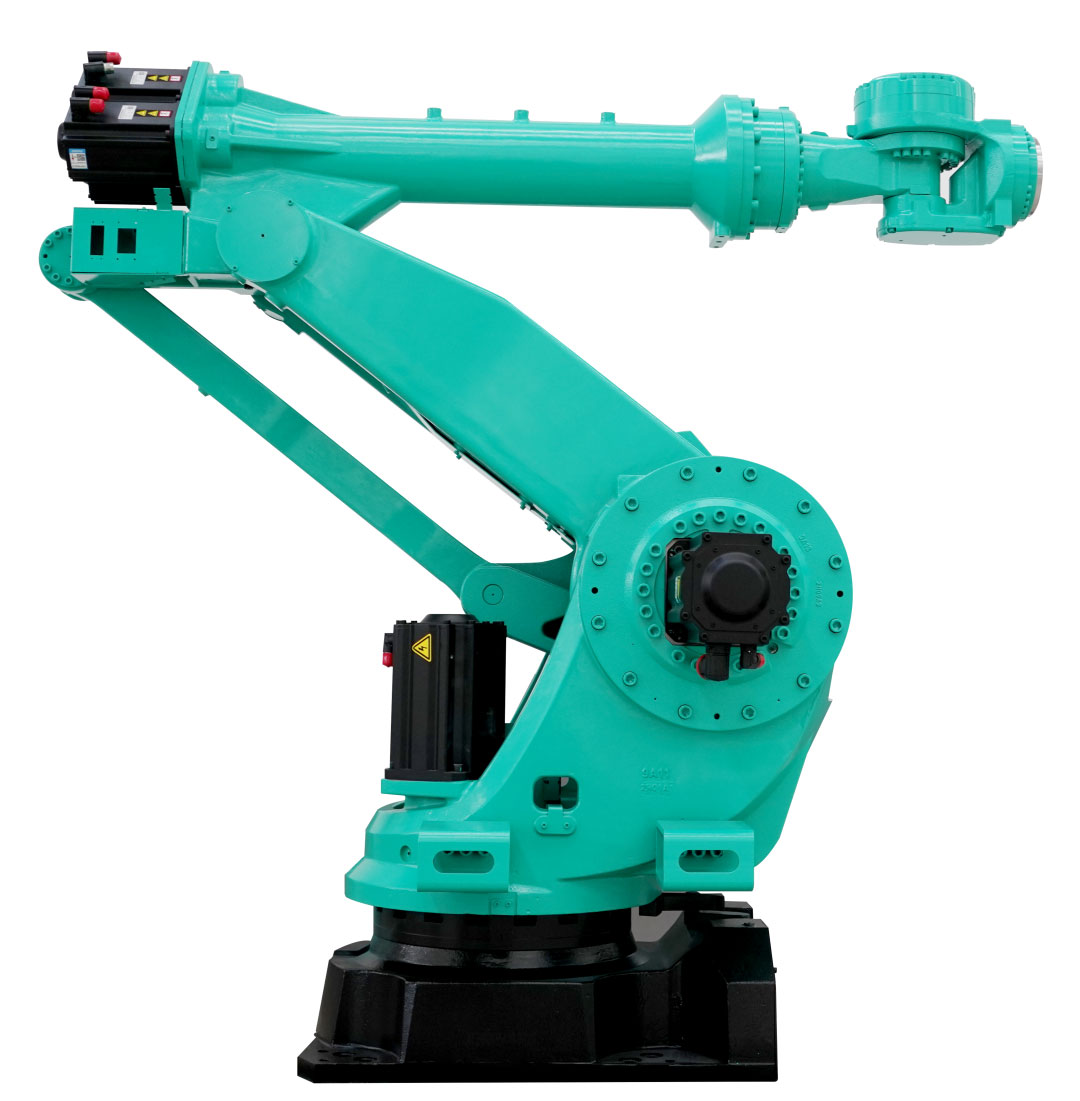 該款工業機器人的位置重復精度≤±0.1mm,最大負載能力達360kg,臂的附加負載達50kg,最大作用范圍/Z-軸行程為2655mm。