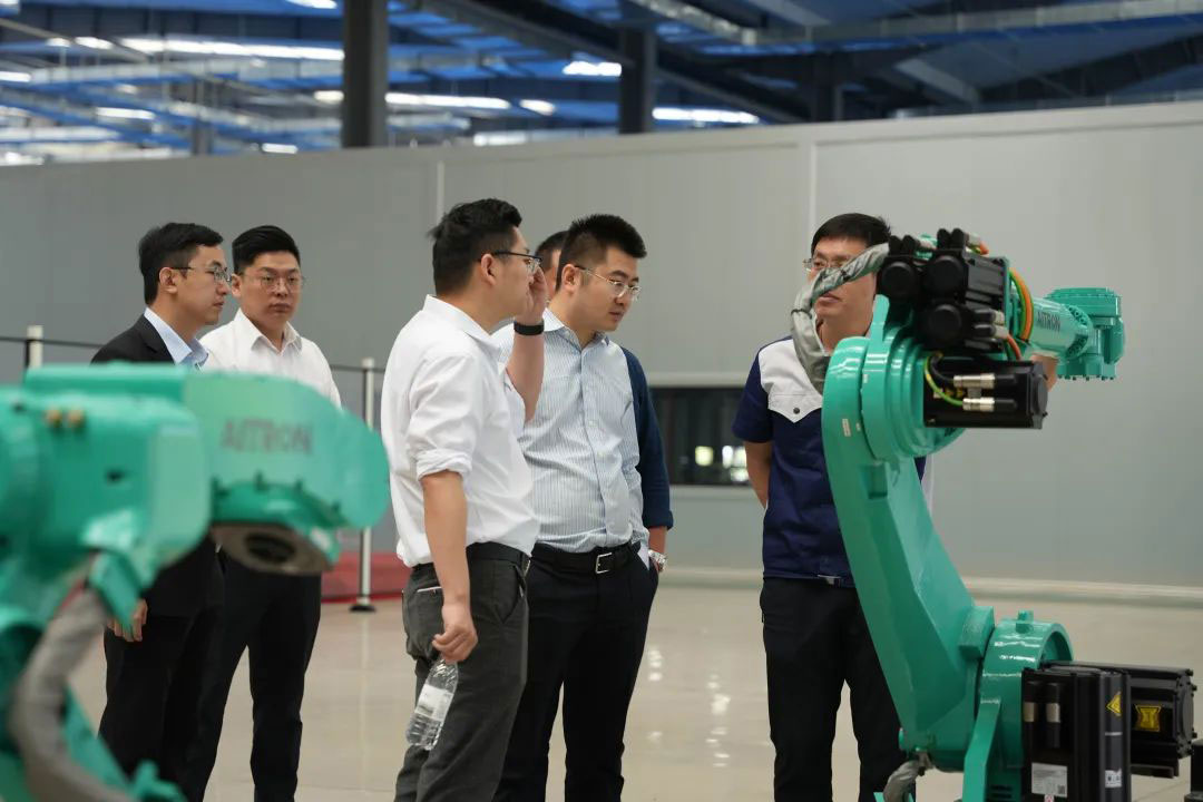 隨后來到艾創(chuàng)科技,現(xiàn)場(chǎng)參觀了6kg-360kg全系列工業(yè)機(jī)器人、RV減速機(jī)生產(chǎn)車間、伺服電機(jī)生產(chǎn)車間。期間仵總對(duì)工業(yè)機(jī)器人在新能源電池加工涂膠應(yīng)用場(chǎng)景中涉及:視覺引導(dǎo)、自動(dòng)涂膠、跟蹤檢測(cè)、自動(dòng)補(bǔ)膠的全流程自動(dòng)化工藝,提出解決方案,從而解決新能源行業(yè)頭部客戶在實(shí)際作業(yè)中的需求痛點(diǎn),并愿意以此類型應(yīng)用場(chǎng)景解決方案為切入點(diǎn),與艾創(chuàng)科技開展機(jī)器人產(chǎn)品應(yīng)用合作。